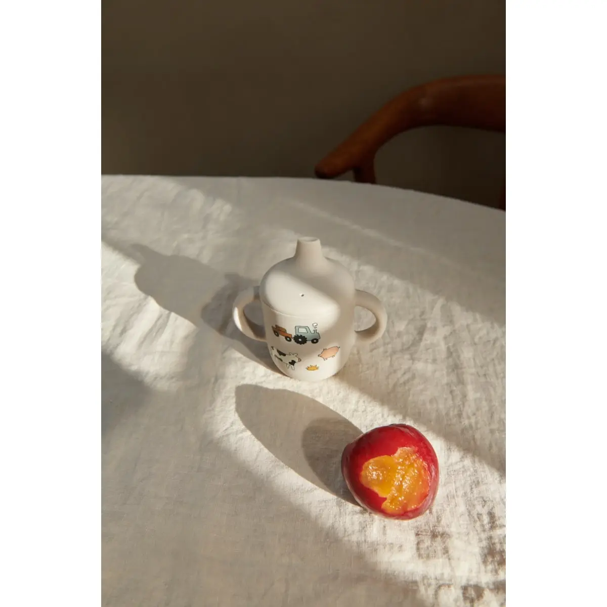 Ein abnehmbarer Deckel mit schmaler Trinköffnung hilft dabei, die Flüssigkeitsmenge zu regulieren und Verschütten zu vermeiden. So können Kinder selbstständig trinken, ohne dass gleich alles daneben geht. Ein echtes Lern-Tool, das Sicherheit und Selbstständigkeit fördert – ganz ohne harte Kanten oder starre Materialien.