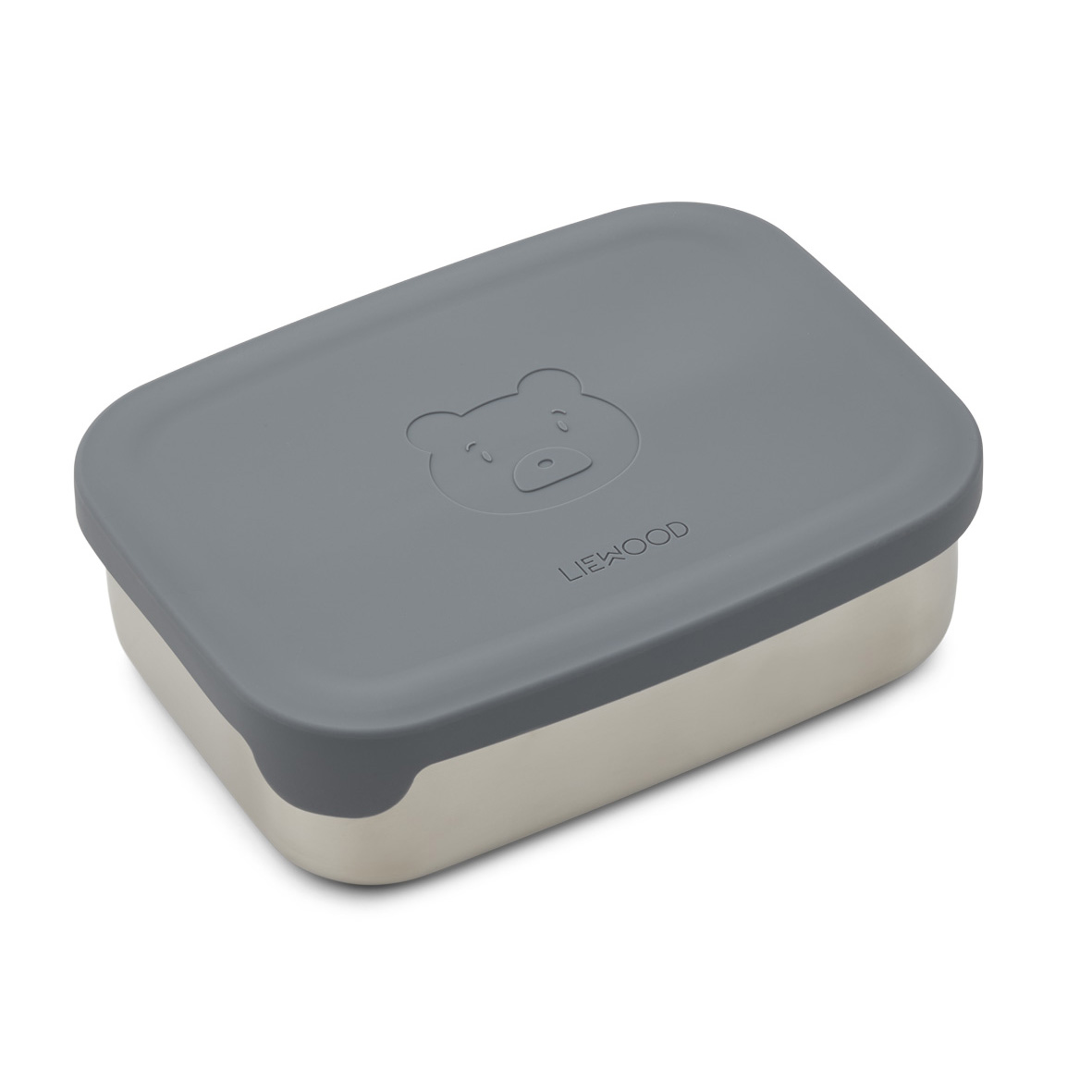 Leichte Liewood Nina Lunchbox aus Edelstahl mit einem niedlichen Silikondeckel. Die Nina Lunchbox ist die größere Version der Arthur Snackbox. Edelstahl eignet sich hervorragend zur Aufbewahrung von Lebensmitteln, da es weder Farbe noch Geruch vom Inhalt behält. Die Liewood Brotdose ist in drei praktische Fächer unterteilt.