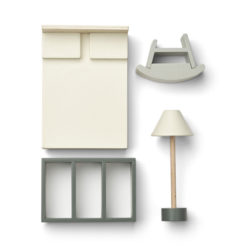 Dekoriere das Liewood Puppenhaus mit dem Schlafzimmermöbel-Set aus Holz und deine Liewood Familie ist bereit zum Einzug.