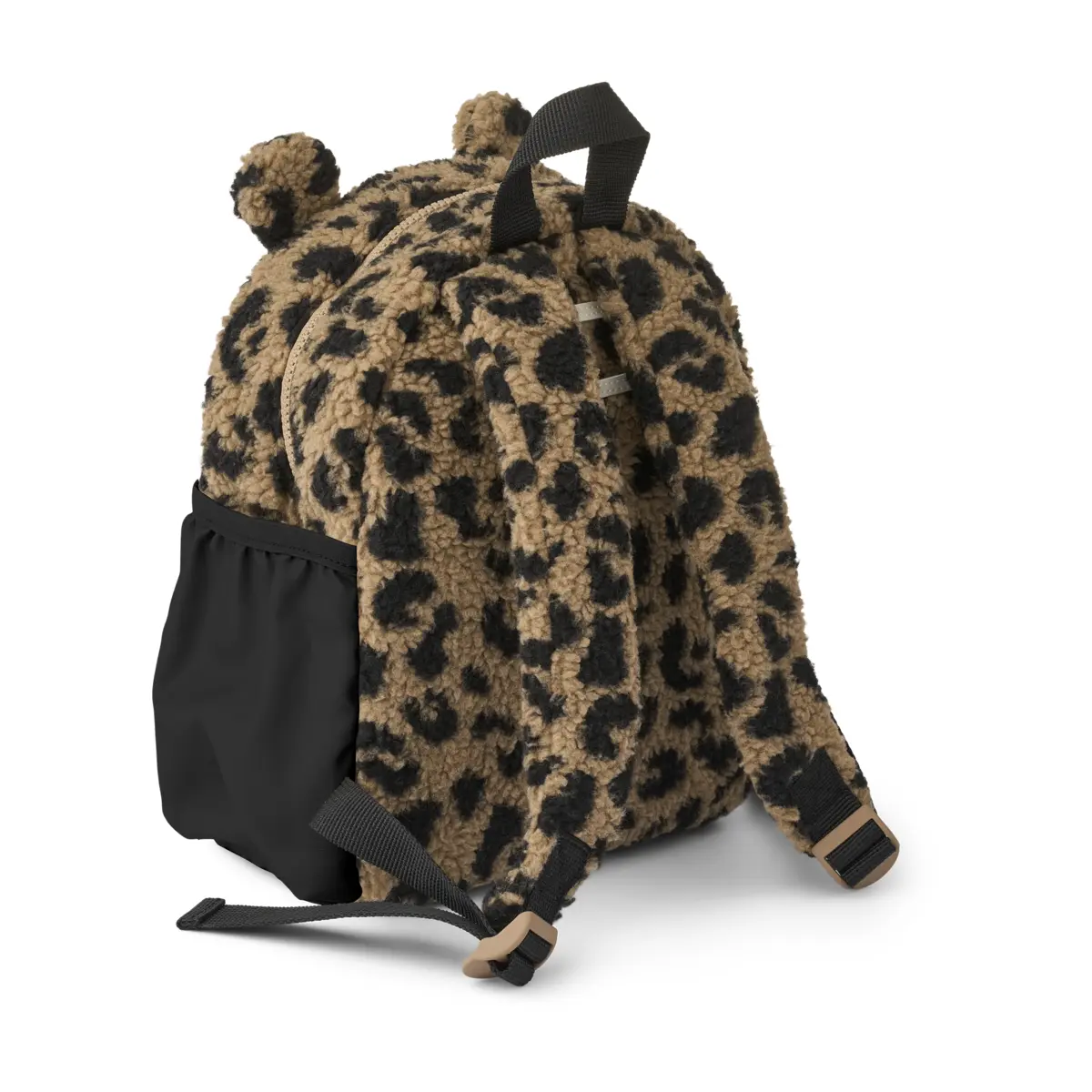 Der Rucksack besteht aus 100 % recyceltem Polyester. Das Material lässt sich mit einem feuchten Tuch abwischen, was im Alltag mit Kindern oft die einfachste Lösung ist. Wenn der Rucksack mit an den Tisch, auf den Boden oder nach draußen kommt, ist genau das hilfreich.