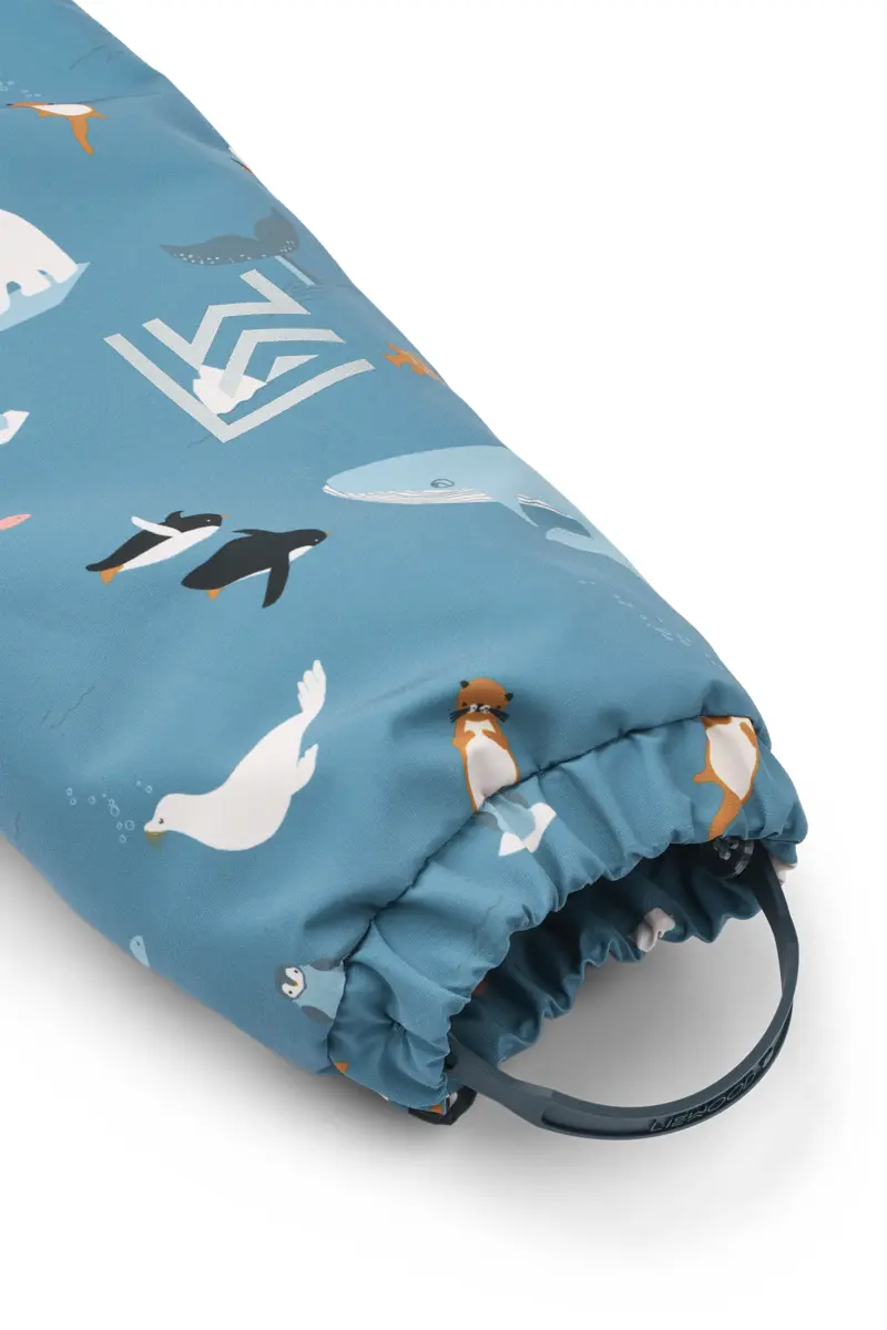 Gefüttert mit THERMOLITE® EcoMade, bietet der Winteroverall eine innovative Alternative zu Daunen: warm, atmungsaktiv und weniger voluminös. Das Außenmaterial sowie das Futter bestehen aus 100 % GRS-zertifiziertem recyceltem Polyester. Mit einer Wassersäule von 12.000 mm ist der Schneeanzug absolut wetterfest und hält Kinder auch bei Schneefall und nassem Wetter trocken.