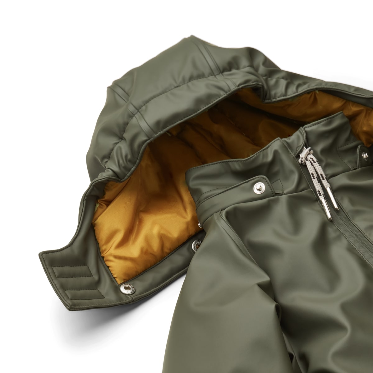 - Abnehmbare Kapuze (wenn die Kapuze entfernt wird, können die Druckknöpfe im Kragen versteckt werden)