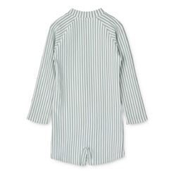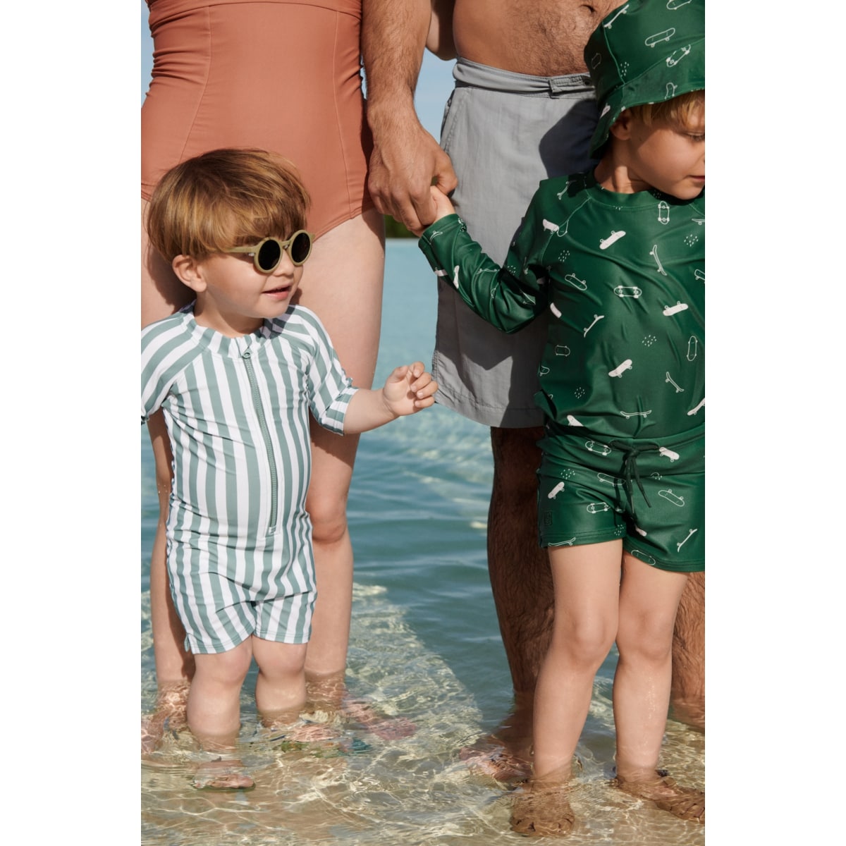 Der Liewood Schwimm-Jumpsuit Max schützt mit LSF 40+ Dein Kind mit langen Armen und kurzen Beinen sowie einem hohem Kragen vor der UV-Strahlung der Sonne.