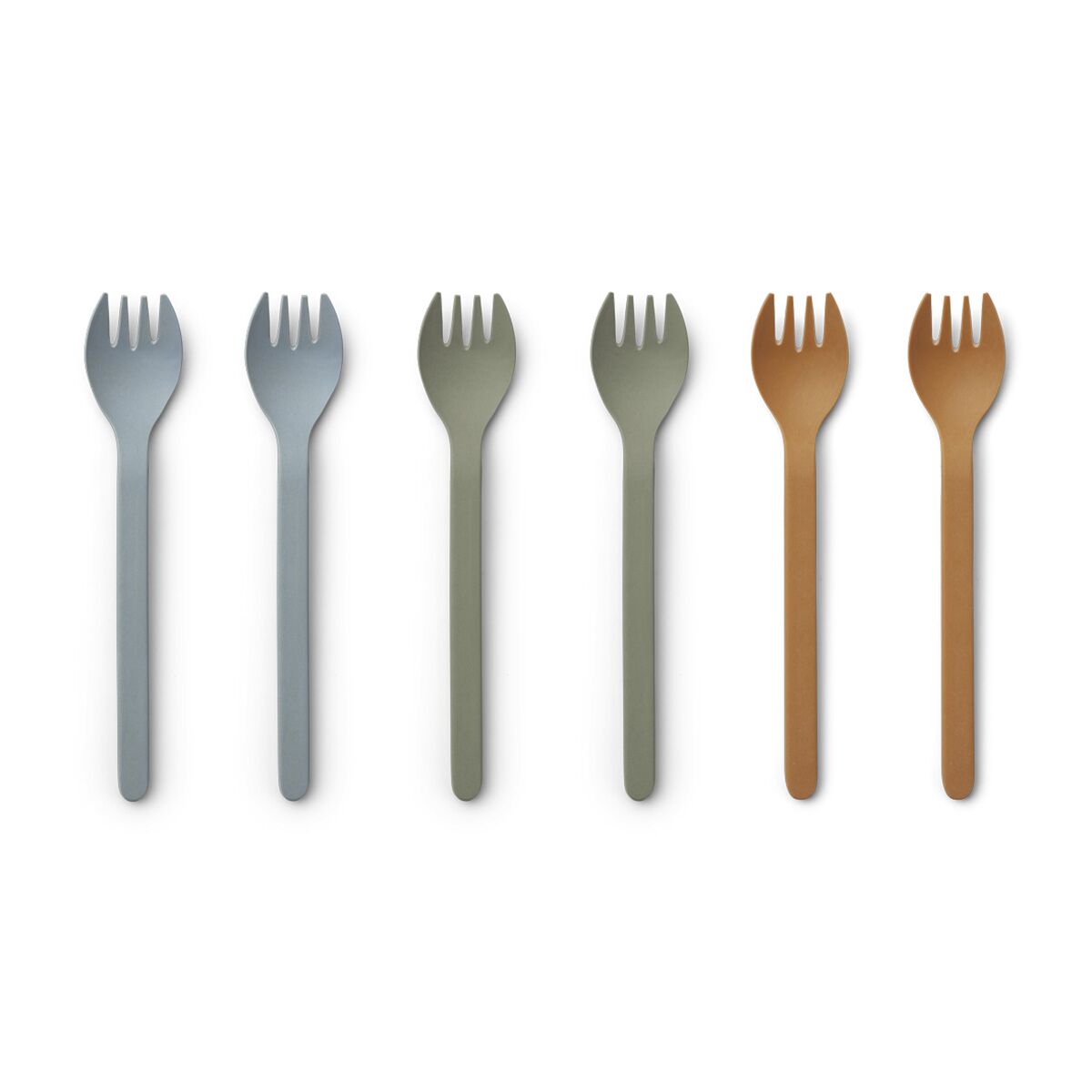 Die biobasierten Liewood Selena Kindergabeln aus PLA fühlen sich weich an und sind eine perfekte Ergänzung für jedes Geschirr Set. Die Gabeln stellen eine nachhaltige Alternative zu Einweggabeln dar.