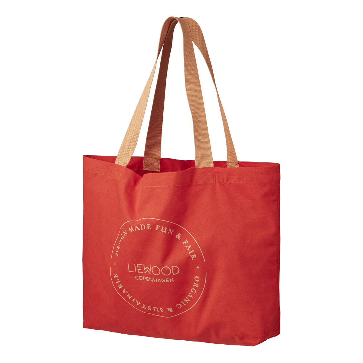 Die große Liewood Stofftasche „Apple red“ besteht aus weicher Bio-Baumwolle.
