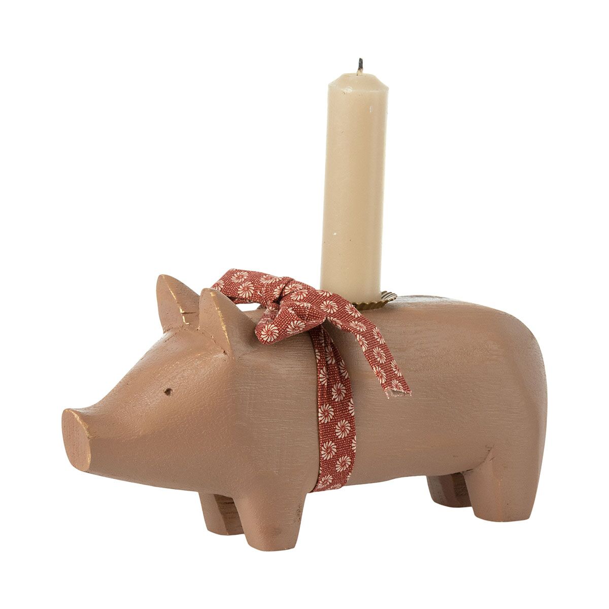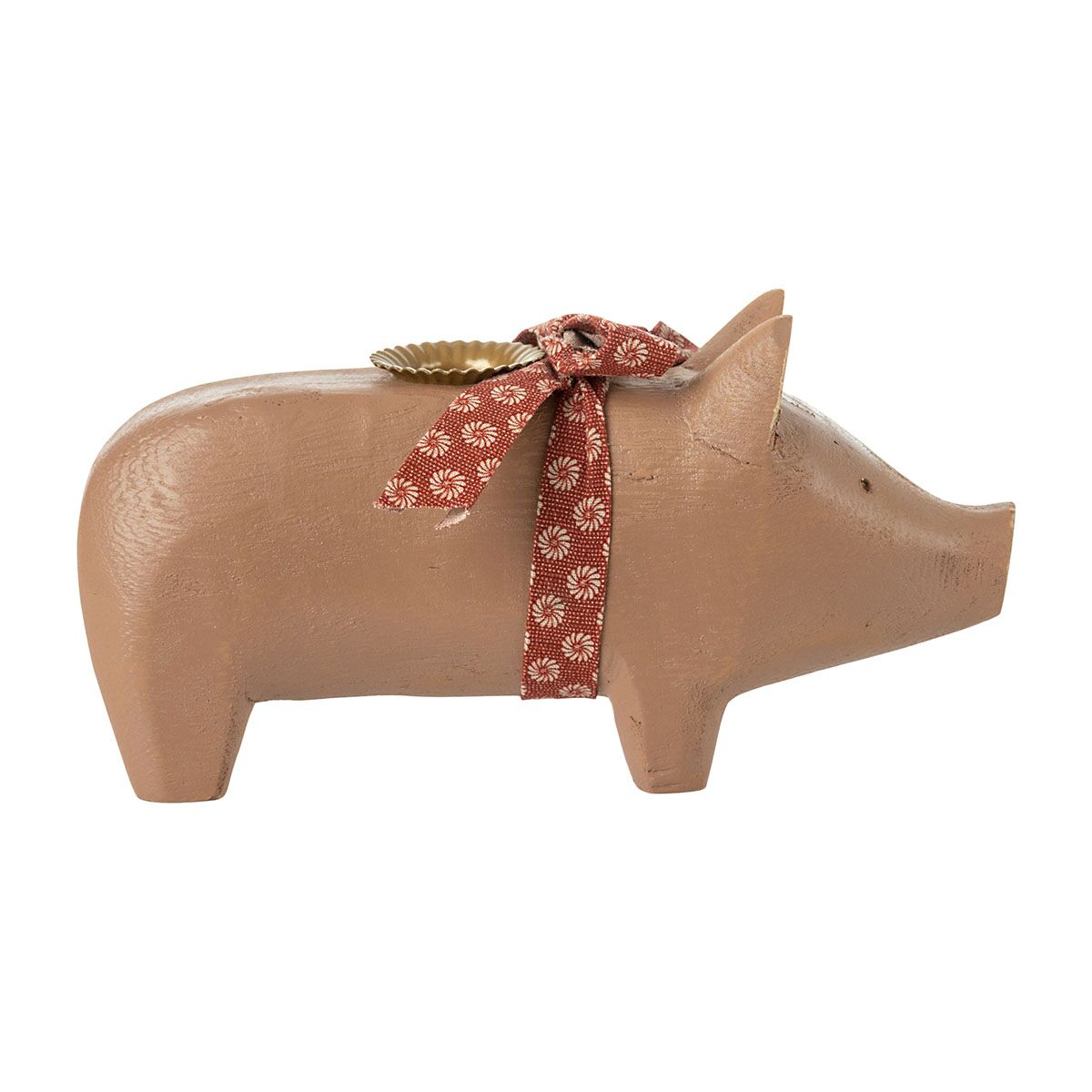 Maileg Holzschwein, altrosa Kerzenhalter, medium, 1-flammig, 19cm