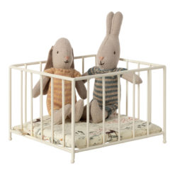 Das Maileg Miniatur Gitterbett passt für Hasen / Kaninchen in Größe Mikro sowie für Baby Teddy Kuscheltiere. Es hält die kleinen Familienmitglieder sicher. Es besteht aus Metall und ist mit einer weichen Matratze ausgelegt.