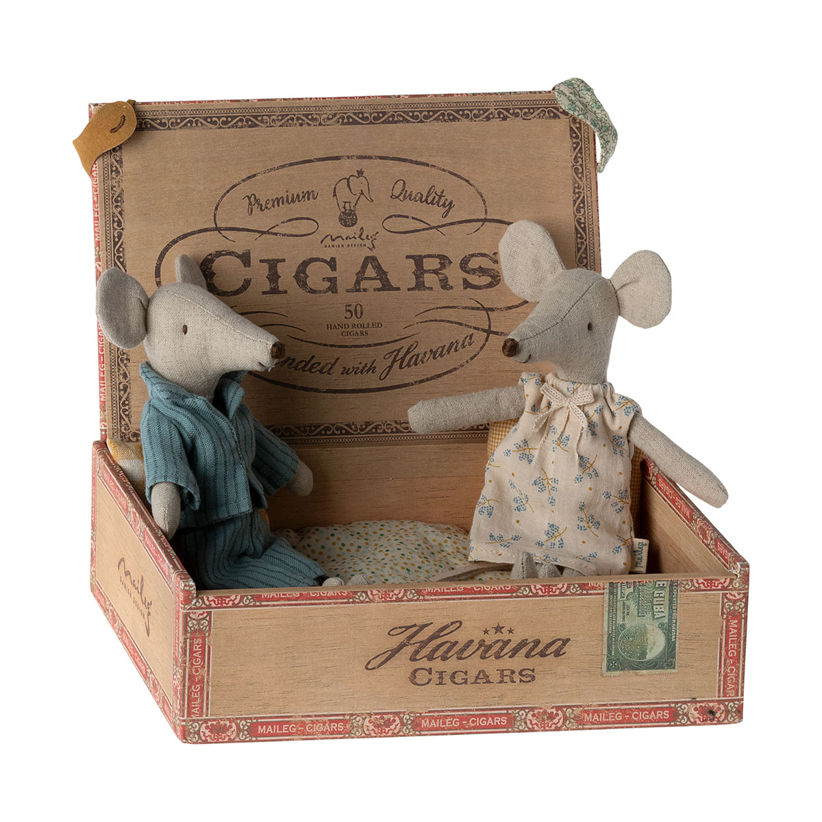 Maileg Mutter & Vater Maus in Zigarrenkiste, Edition 2023