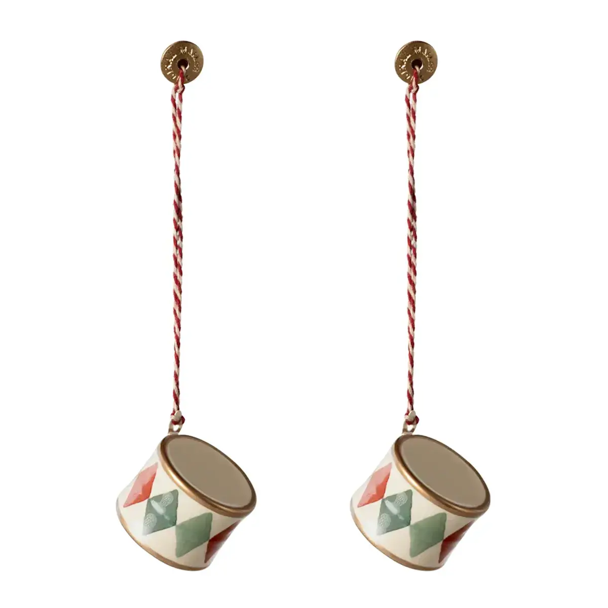 Maileg Weihnachtsbaumschmuck 2er-Set Metall Trommel „klassisches grün“ 2,5cm