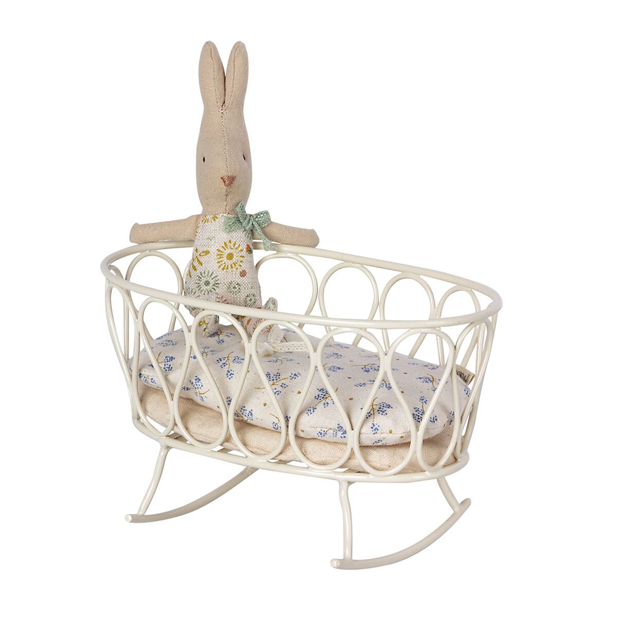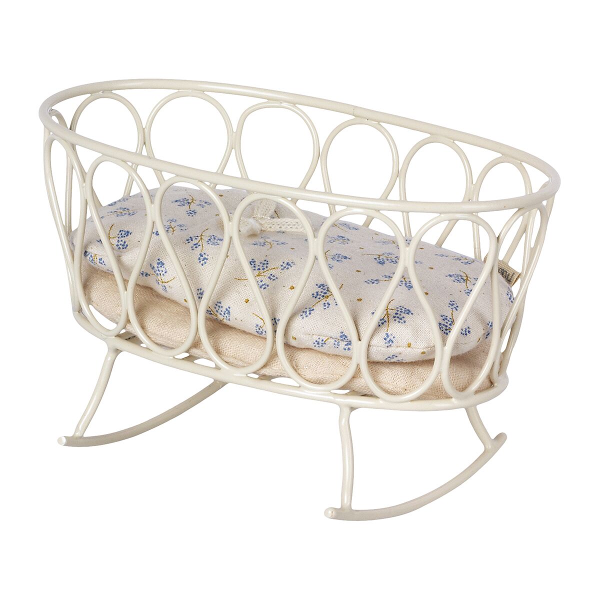 Eine schön gestaltete Wiege aus Metall mit einem weichen Schlafsack und einer Matratze im Inneren. Die Maileg Wiege hat abgerundete Füße, sodass Sie Ihre kleinen weichen Freunde problemlos in den Schlaf wiegen können.