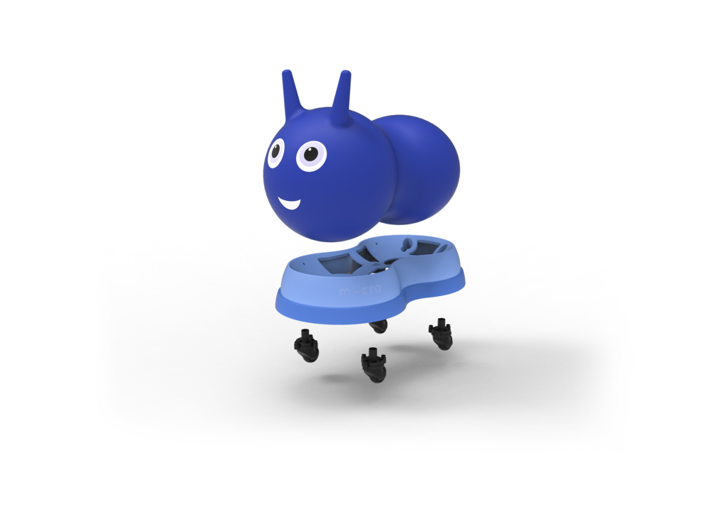 Der Micro Mobility air hopper kombiniert auf revolutionäre Art und Weise das bekannte Hüpfgefühl eines Springballs mit Fahrspaß auf Rädern. Das ergonomisch designte Kinderspielzeug besteht aus zwei Komponenten – einem aufblasbaren Hauptteil und einem Chassis mit 360° PU-Rollen, die besonders leise sind und keine Spuren hinterlassen.