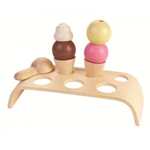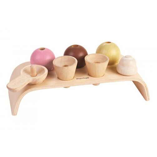 Mit dem PlanToys Eiscreme-Set aus Holz kreieren die Kleinen ihre eigene Eiskombination! Das Set enthält 3 verschiedene Eiskugeln, 1 Topping, 2 Tüten und 1 Löffel. Dieses Holzspielzeug fördert die Feinmotorik und die Hand-Auge-Koordination.