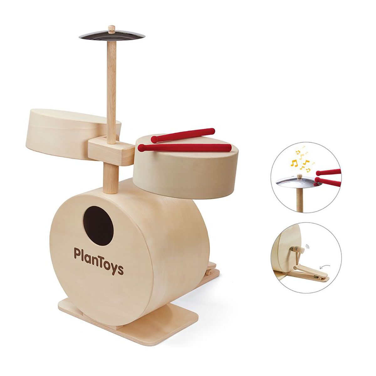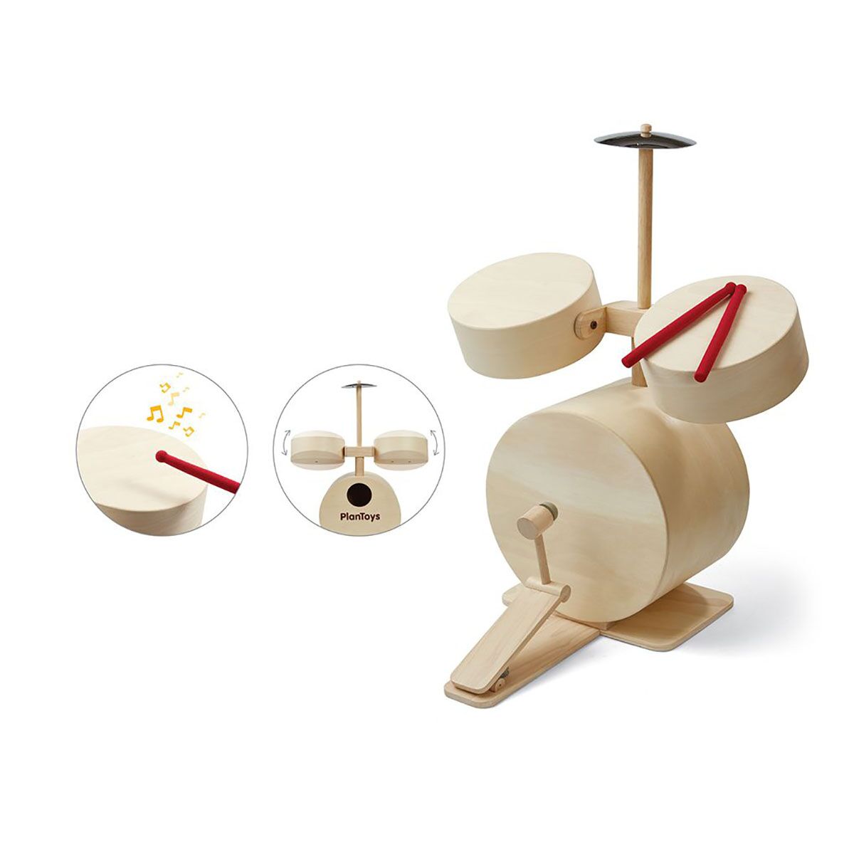 Werde Mitglied einer Rockband und spiele auf der Bühne mit dem PlanToys Kinder-Trommel-Set! Dieses Schlagzeug ist das erste der Welt, das komplett aus Holz gefertigt ist und eine Vielzahl von Klängen und Rhythmen erzeugen kann. Ausgestattet mit einer kleinen und einer großen Trommel, einem Pedal, einem Becken und einem Paar Gummistöcken können Kinder ihre Hand-Augen-Koordination, ihre Motorik, ihre Konzentrationsfähigkeit, ihre Hörschärfe und vieles mehr trainieren.