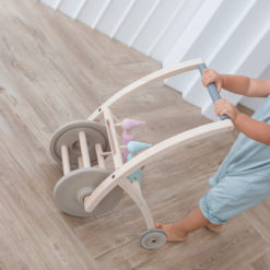 Wenn der PlanToys Specht-Lauflernwagen bewegt wird, picken die beiden Spechtköpfe auf Holz und erzeugen so ein charakteristisches Klopfgeräusch. Dies regt Kinder dazu an herumzulaufen und sich mehr zu bewegen!