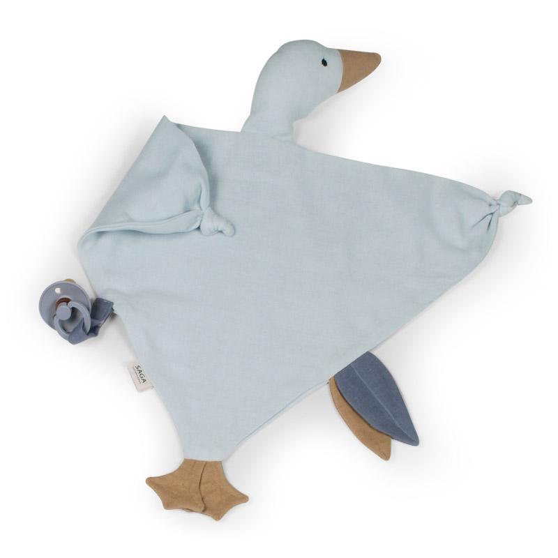 Dieses weiche Saga Copenhagen Kuscheltuch Bliki in Forma einer Gans ist Ideal zum Schmusen und Spielen. Die Schmusetuch hat eine praktische Schlaufe für einen Schnuller, damit diese nie weit weg ist. Die Gans ist aus 100% GOTS-zertifizierter Bio-Baumwolle hergestellt.