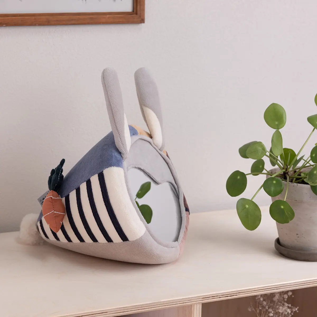 Der Aktivitätskegel besteht aus weichem Velours in den verschiedenen Farben der Woodland-Serie und besitzt einen Kern aus Memory-Schaum, damit er seine Form behält. An der Unterseite des Sebra Activity-Speilzeugs befindet sich ein sicherer Babyspiegel, damit Ihr Kind sich selbst entdecken kann. Zudem hat er zwei Ohren, die den Kegel wie ein Kaninchen aussehen lassen.