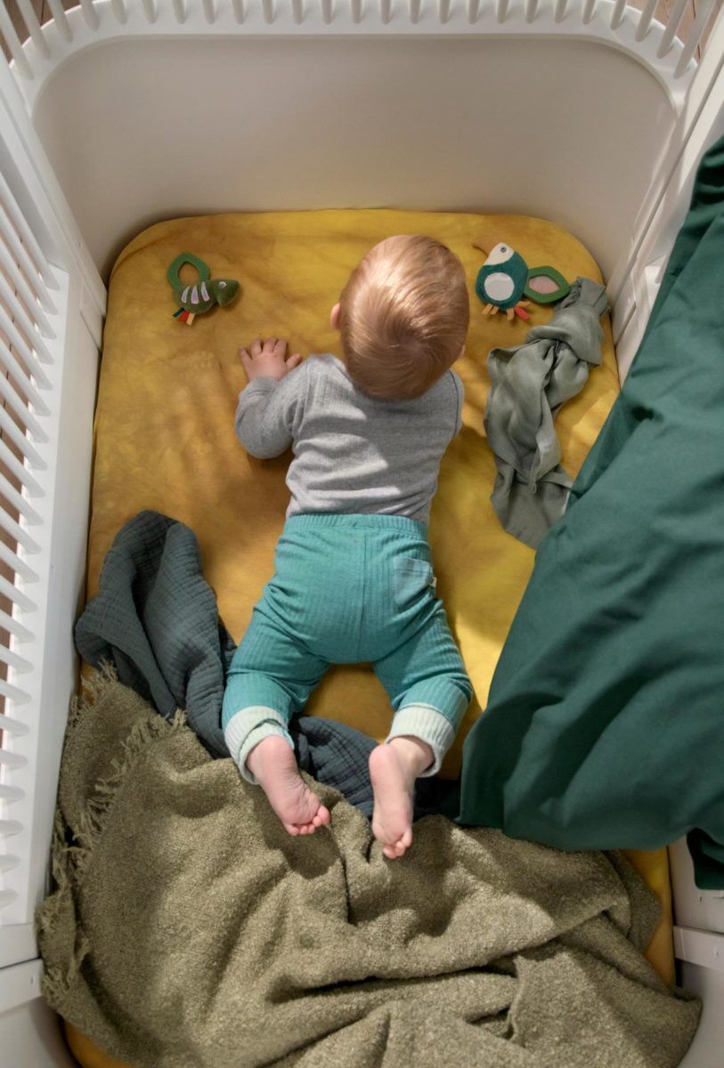 - Den Tastsinn – wenn das Kind Texturen, den Weichheits- und Härtegrad sowie verschiedene Materialien erfühlt.