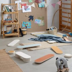 Die Kinder können die verschiedenen Teile selbst zusammenzusetzen und somit ständig neue Parcours kreieren. Die Balancierklötze und -bretter können einzeln oder gestapelt verwendet werden, um unterschiedliche Höhen und Schwierigkeitsgrade zu erzeugen. Zwei der Balancierbretter sind sogar kippbar, was dem Spiel zusätzliche Herausforderungen und Abwechslung verleiht.