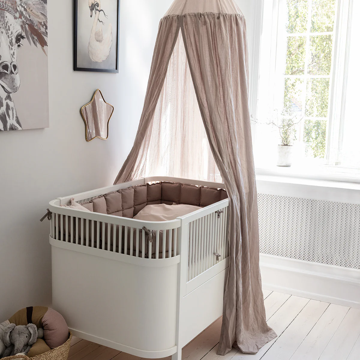 Der Sebra Baldachin verleiht dem Kinderzimmer eine stilvolle und geborgene Atmosphäre. Gefertigt aus zertifizierter Bio-Baumwolle in exklusiver Dobby-Webart, kombiniert er dekorative Eleganz mit funktionaler Leichtigkeit. Der zarte Stoff mit eingewebten Streifen sorgt für eine optimale Luftzirkulation und ein angenehmes Schlafklima.