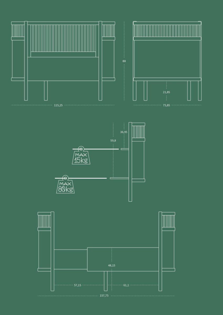 - WICHTIG! Die Stützbalken müssen demontiert werden, bevor das Bett mit der niedrigsten Position des Bettbodens benutzt wird. Die Gitter an den Seiten sollten entfernt werden, sobald das Kind selbstständig aus dem Bett krabbeln kann. Viele Eltern versuchen, die Zeit mit den Gitterseiten möglichst lange hinauszuzögern, da die Entfernung der Gitterseiten auch weniger Kontrolle bedeutet. Aus Sicherheitsgründen müssen sie jedoch demontiert werden, sobald das Kind selbstständig aus dem Bett krabbeln kann.