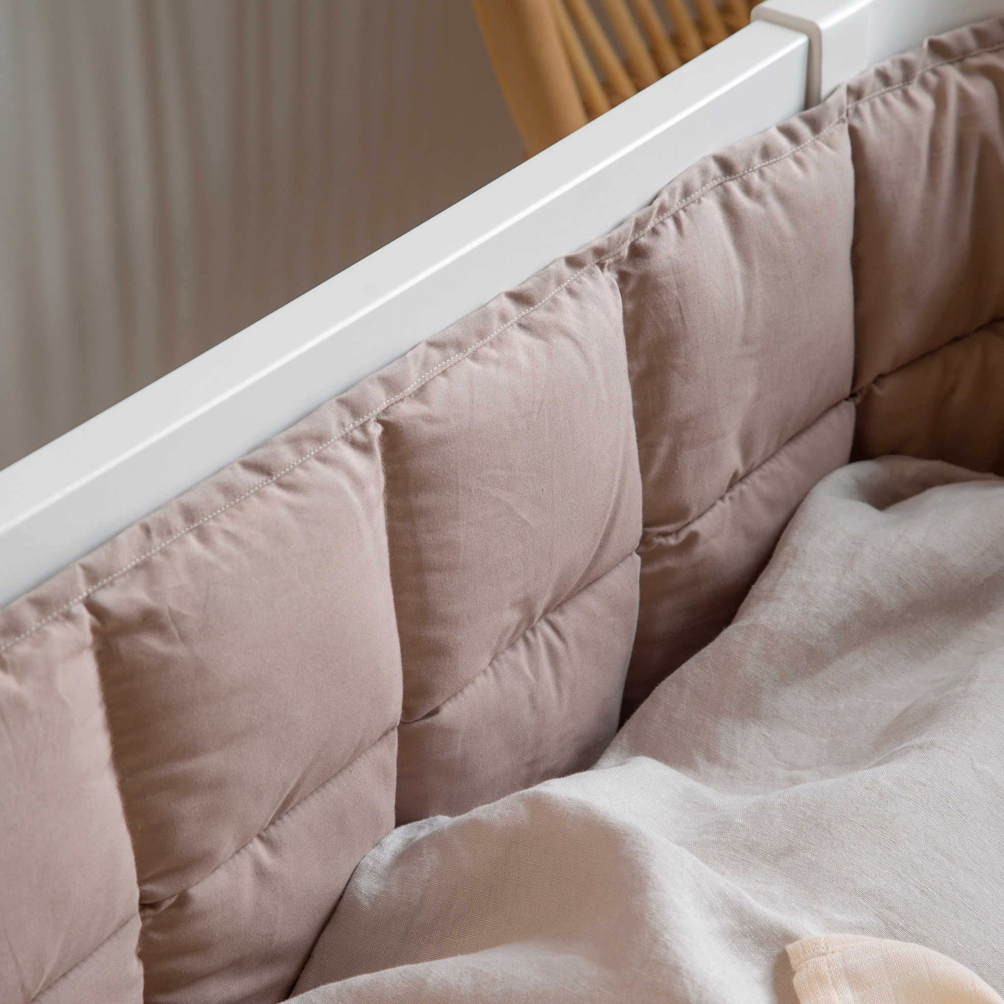 Dieses Sebra Bettnestchen mit einer Füllung aus Bio-Kapok passt ideal in das Sebra Bett, Baby Jr. und in ein Standard-Kinderbett mit einer Größe von 60 x 120 cm. Dieses Bettnestchen lässt sich auch an ein kleineres Bett anpassen, indem man es, z. B. am Fußende, überlappend hinlegt.