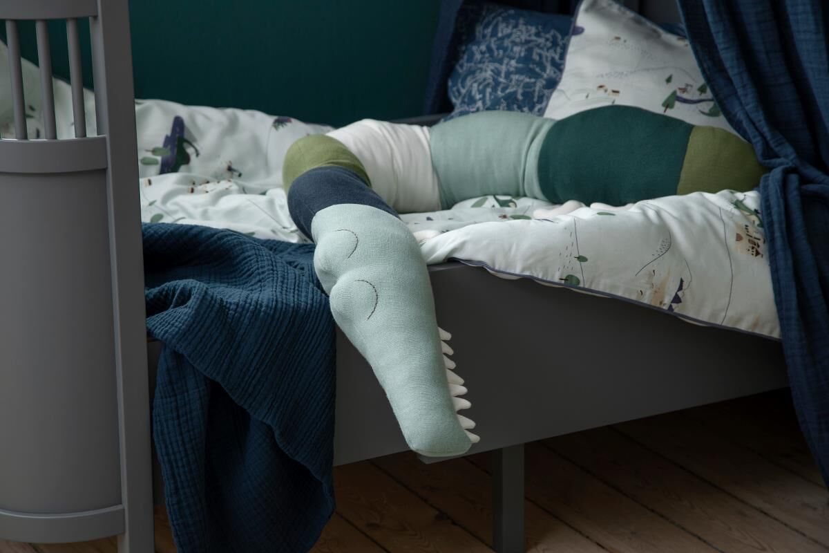 Die Sebra Bettschlange Sleepy Croc ist kein gefährliches Krokodil, obwohl es mit seinen spitzen Zähnen ein wenig so aussieht. Sleepy Croc ist ein niedliches Krokodil, das gerne kuschelt und schläft. Das Sleepy Croc wurde in Dänemark entworfen und ist aus hochwertiger, weicher Bio-Baumwolle gefertigt. Dieses Krokodil lässt sich auch schnell als gemütlicher Spielkamerad zum Leben erwecken, der sich auf dem Bett schlängelt. Es ist aber auch die ideale Einschlafhilfe oder ein schönes Dekokissen. Sleepy Croc kann auch als Schwangerschaftskissen/Schlauchkissen verwendet werden.