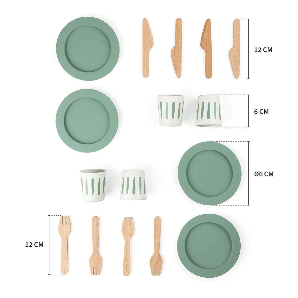 Das Sebra Geschirr-Set wurde sorgfältig aus zertifiziertem Holz gefertigt und passt perfekt zu den anderen Sebra-Küchenaccessoires wie Töpfen, Pfannen und Teesets. Ob in der Spielküche oder beim freien Rollenspiel, dieses Set bietet Kindern unzählige Möglichkeiten, ihrer Fantasie freien Lauf zu lassen.