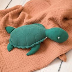 Das Sebra Kuscheltier „Triton die Schildkröte“ verfügt über die schöne grüne Farbe „Seaweed Green“ und hat einen cremefarbenen Unterkörper. Hübsche gestickte Details auf den Flossen sowie Nähte auf dem Panzer sorgen dafür, dass Triton lebensecht aussieht. Ein ideales „erstes Kuscheltier“, welches das Kind garantiert lange begleiten wird. Dieses Kuscheltier ist perfekt dafür geeignet, um es auf einen Ausflug mitzunehmen, oder als ultimative Einschlafhilfe zum Kuscheln.