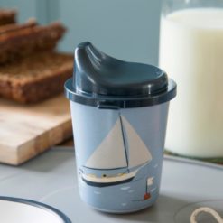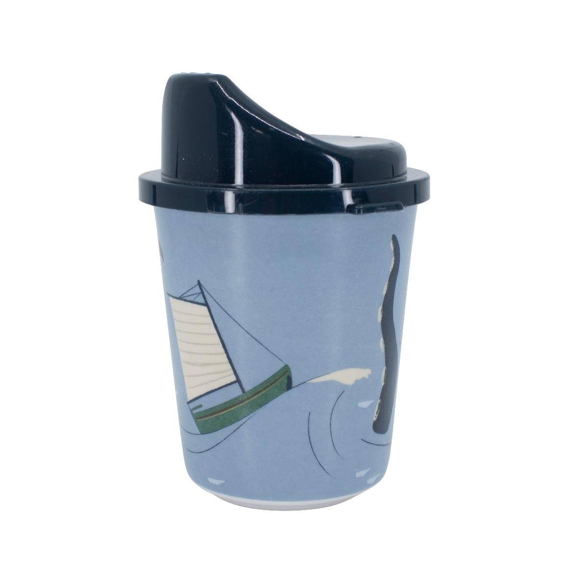 Auf dieser Kindertasse kann das Kind hübsche Illustrationen von Schiffen und dem sagenumwobenen Kraken entdecken.