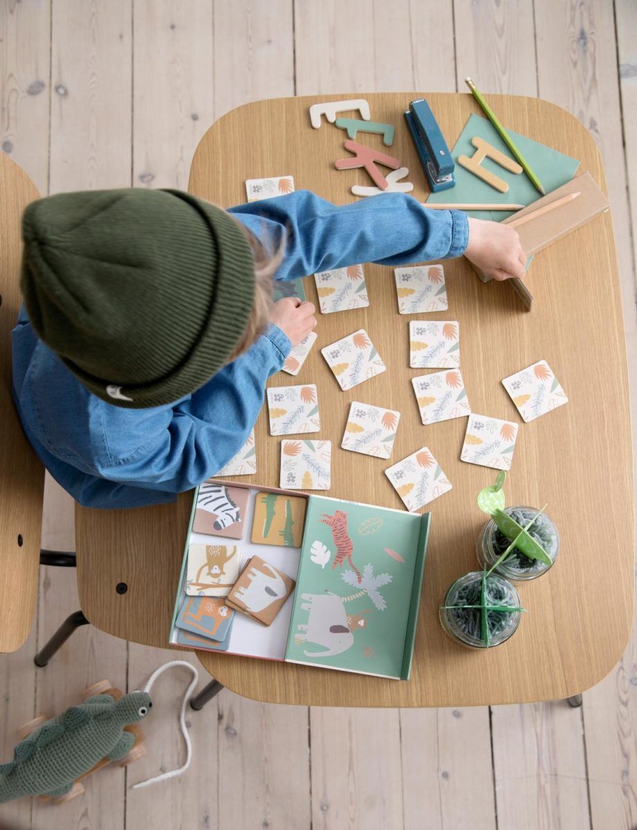 Der Tisch ist perfekt abgestimmt auf die Oakee Bank und den Oakee Stuhl von Sebra. Gemeinsam entsteht eine harmonische Sitzgruppe, die Kinder über mehrere Jahre begleitet und sowohl funktional als auch ästhetisch überzeugt.