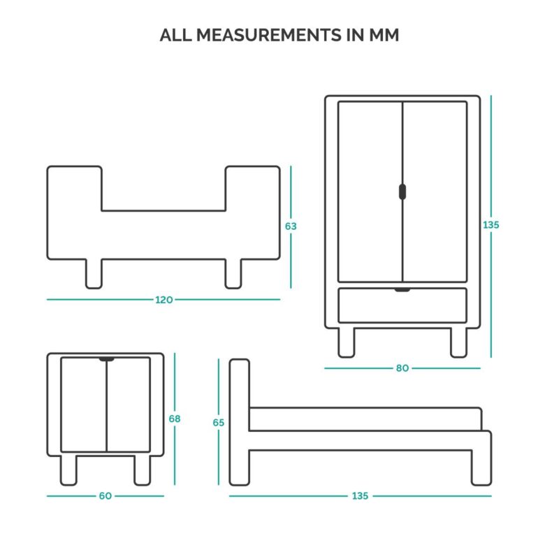 Dieses Sebra Puppenhaus Schlafzimmer Set in dänischem Design beinhaltet Miniaturversionen der folgenden Designklassiker: das „Sebra Bett, Baby & Jr.,“ in Weiß, „den Sebra Kleiderschrank“ mit Doppeltüren und „Die Sebra Wickelkommode“ ohne Wickelauflage. Darüber hinaus gehört ein Kingsize-Doppelbett mit Bettrahmen in Naturfarbe dazu. Zum Bett gehört eine blaue Matratze mit aufgemalten Kissen. Die Möbel verfügen über klassische und funktionale Formen, die sich gut zum Spielen eignen. Ein hübsches Zubehör-Set für das Sebra Puppenhaus, das auch gut ohne das Puppenhaus genutzt werden kann.