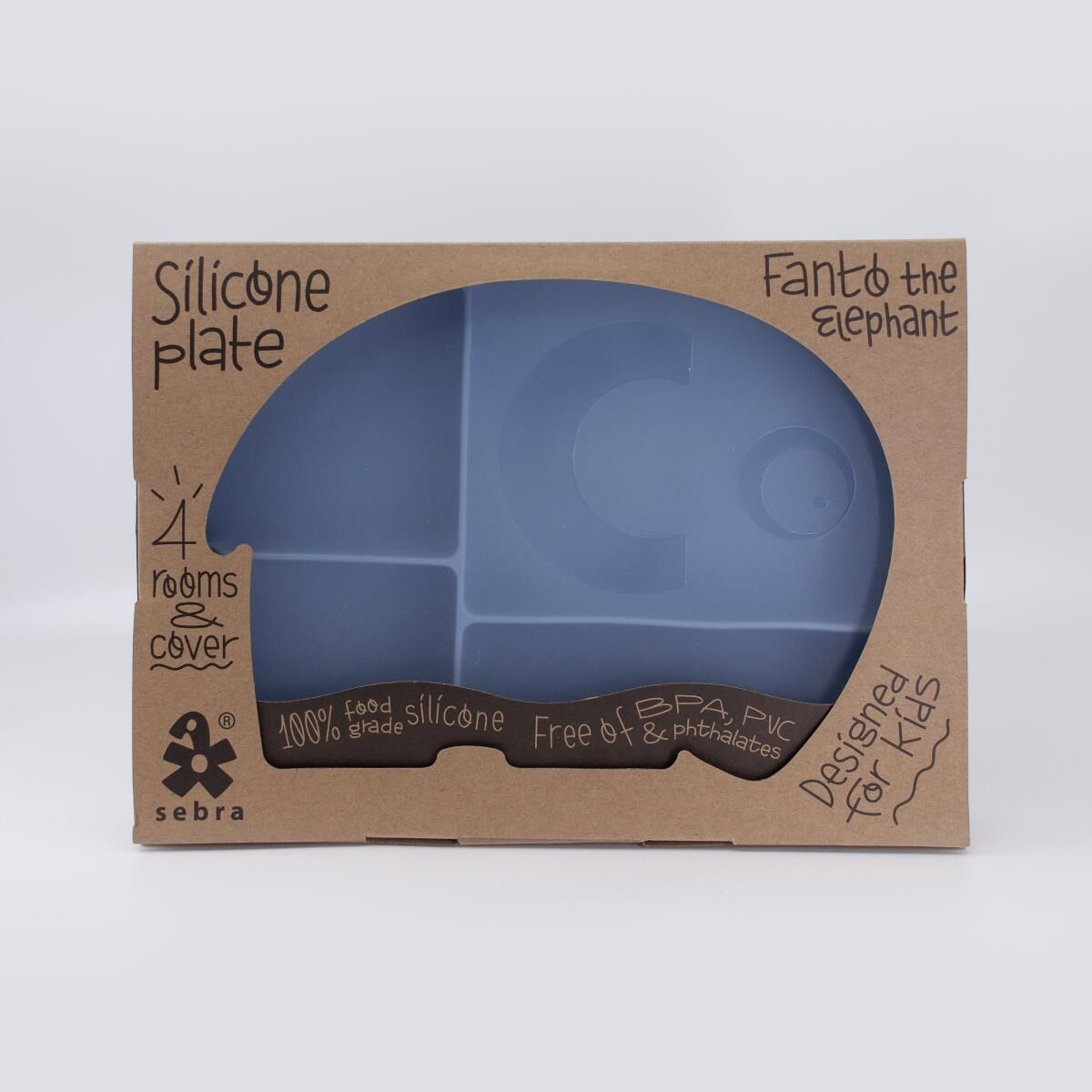 Sebra Silikon Teller mit Deckel, Fanto der Elefant „Powder Blue“