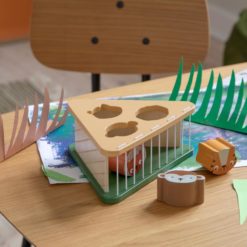 Es muss das richtige Loch für Maci der Affe, Lee der Löwe und Tupi der Tiger gefunden werden, wonach die Tiere wieder „befreit“ werden, indem sie durch den elastischen Ausgang herausgenommen werden. Dieses Sebra Sortierspiel stärkt die Feinmotorik, die Hand-Augen-Koordination und das logische Denken des Kindes.