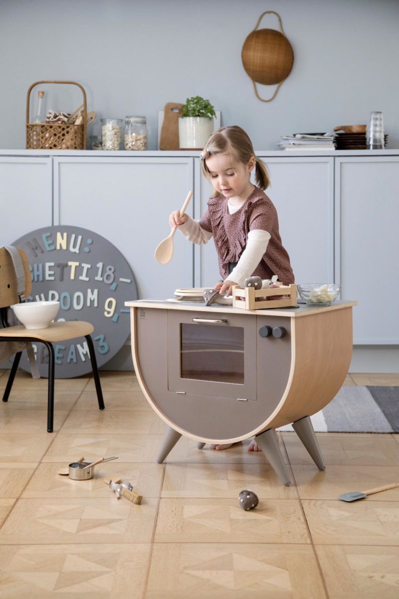 Charmante Unisex-Kinderküche aus Holz, welche mit ihrem schönen Farbton „Warmes Grau“ sowie der natürlichen Holzfarbe in jedem Raum gut aussieht – in der Küche, im Wohnzimmer oder im Kinderzimmer. Die Sebra Sebra Spielküche in grau wird der ganzen Familie Freude bereiten und die Kleinen können so richtig ihre Kochkünste und Fantasie entfalten, wenn Sie in ihrer Miniküche nachahmen, was Mama und Papa in der Küche machen.