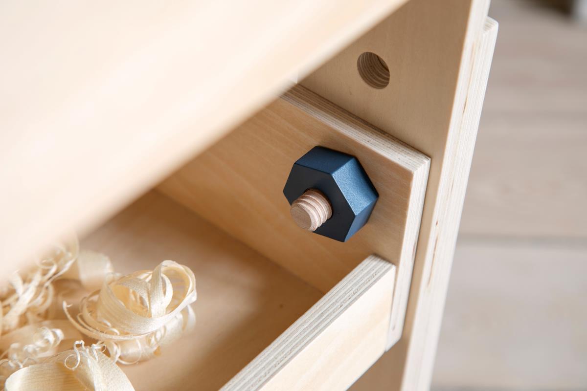 Die Sebra Spielzeug-Werkbank ist mit zwei Schraubstöcken ausgestattet – einem an der Vorderseite und einem an der Seite – und hat unten ein offenes Regal zur Aufbewahrung von Werkzeug. Darüber hinaus verfügt die Werkbank über zusätzlichen Stauraum neben der Arbeitsfläche. Ob beim Bauen, Schreinern oder Reparieren erhält das Kind zahlreiche Möglichkeiten, seine Fähigkeiten zu erproben. Eine Werkbank, die garantiert für stundenlangen Spielspaß sorgt.