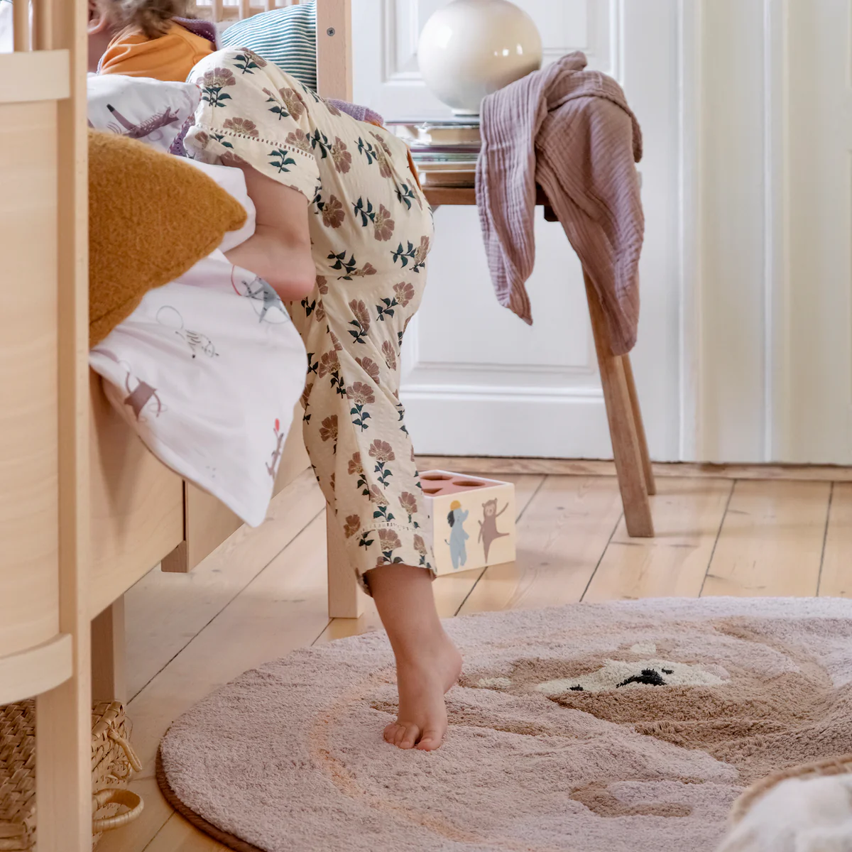 Der in Dänemark entworfene Teppich ist so robust, dass er problemlos mehreren Geschwistergenerationen standhalten kann. Er kann mit anderen Motiven aus der „Teeny Toes“-Serie kombiniert werden oder als eigenständiges Highlight in verschiedenen Einrichtungsstilen dienen.