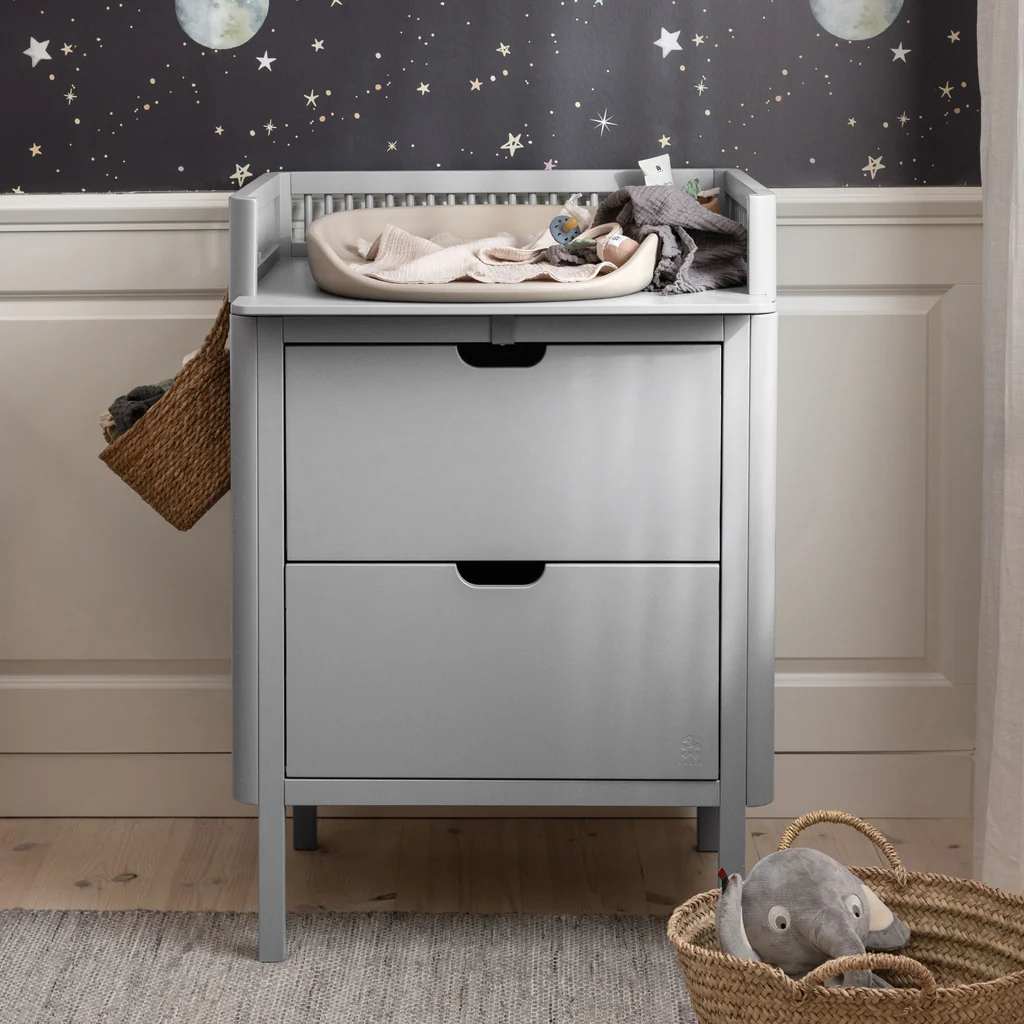 Die Sebra Wickelkommode mit Schubladen passt perfekt zu weiteren Möbelstücken der Sebra-Serie. Gestalte ein einheitliches Kinderzimmer, das nicht nur durch Funktionalität, sondern auch durch ein ansprechendes Design überzeugt.