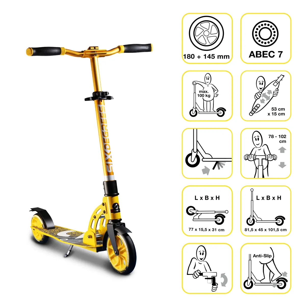 Funktionen und Highlights des Six Degrees Aluminium Scooters 180/145 mm