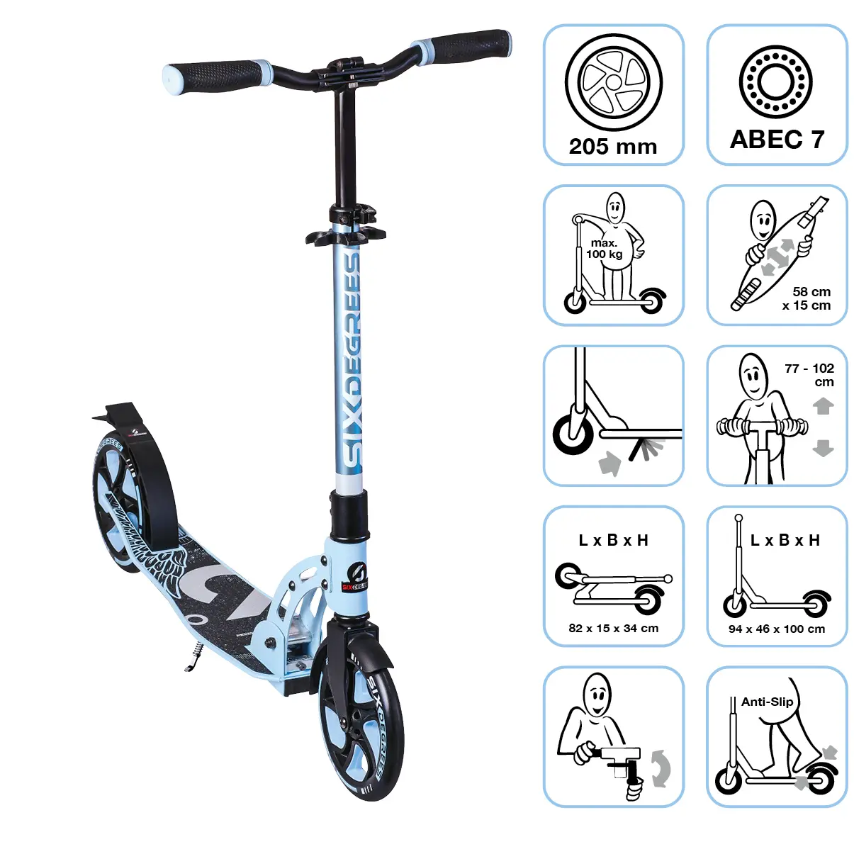 Six Degrees Aluminium Scooter 205 mm – Pastellblau