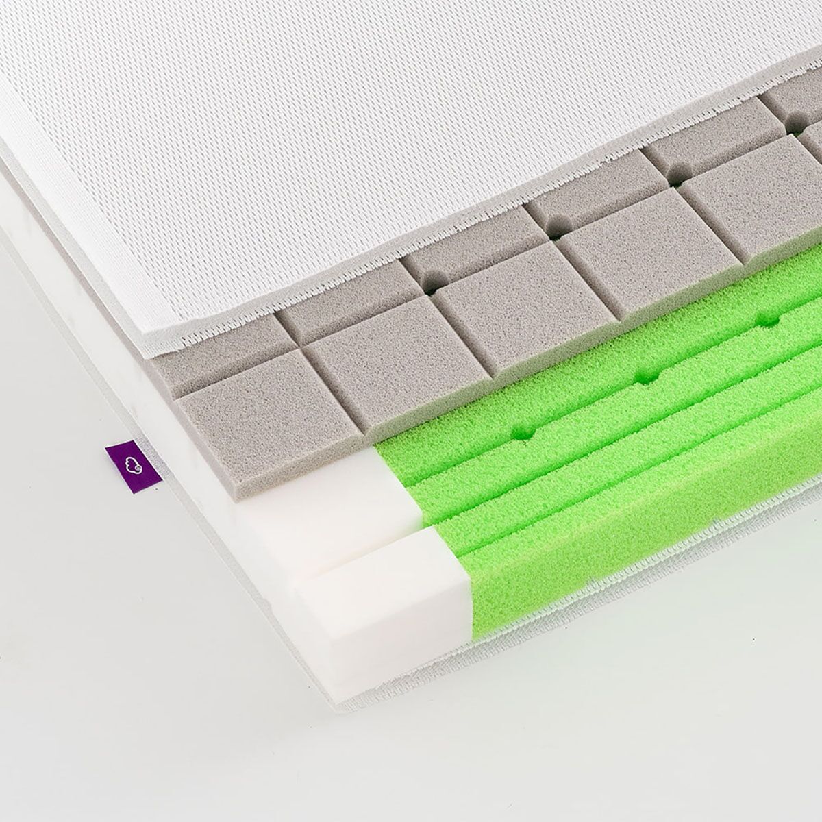Reagiert auf Druck und passt sich optimal dem Körper des Babys an. Die offenporige Struktur macht den visco-elastischen Schaum besonders luftdurchlässig.