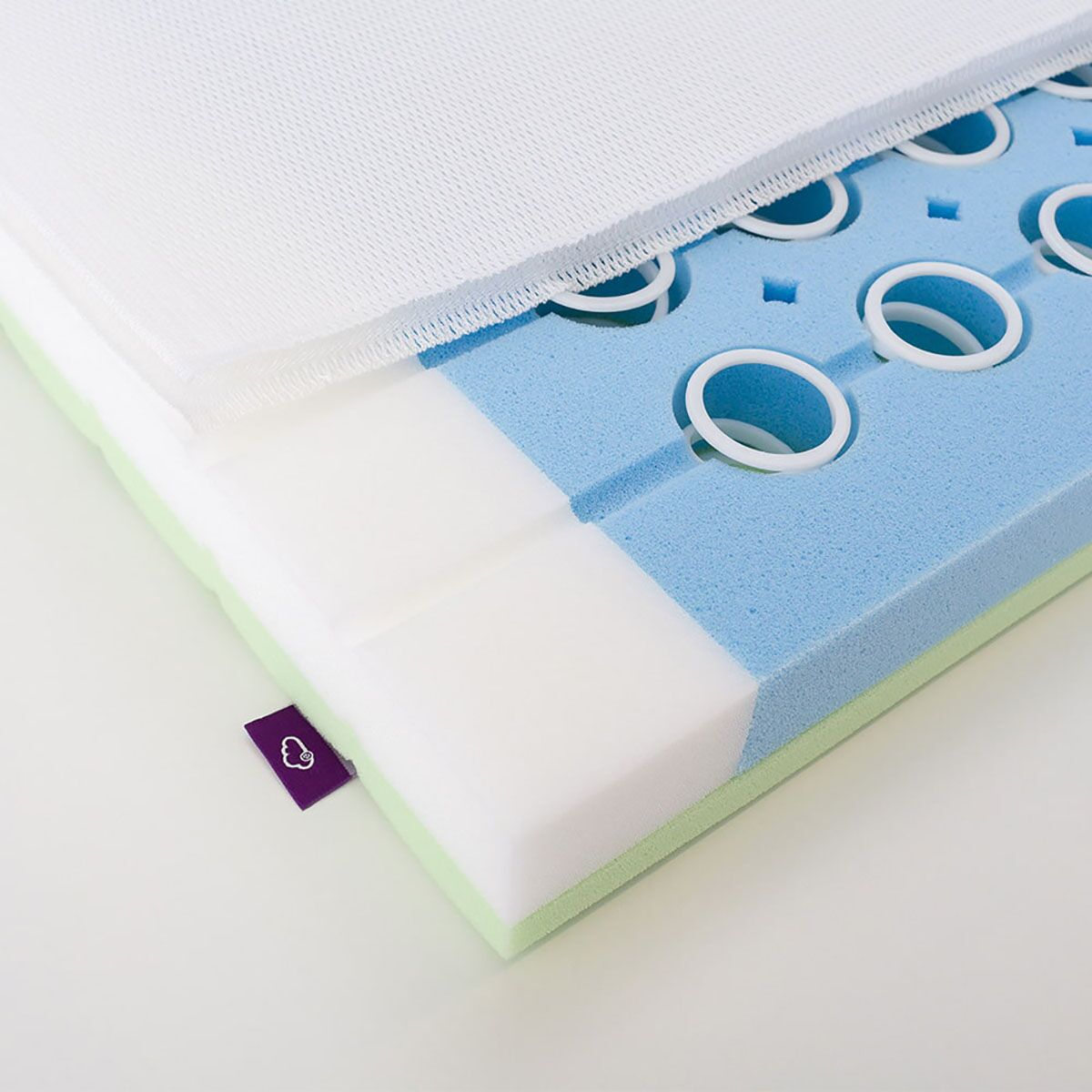 Aufgrund der unzähligen, einzelnen Polyesterfäden sind 3D-Luftpolsterauflagen unvergleichbar luftdurchlässig und höchst punktelastisch. Dein Baby kann dadurch freier atmen und schwitzt weniger.
