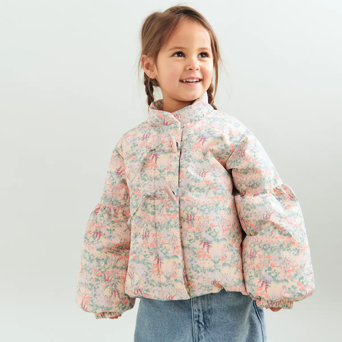 Die Sola Jacke ist keine ganz schlichte Kinder-Steppjacke. Gerade das macht sie besonders. Die voluminösen Ärmel, der kleine Kragen, die Raffungen und der vordere Knebelverschluss geben ihr eine eigene Form, die sofort auffällt, ohne im Alltag schwierig zu sein. Durch die verdeckten Druckknöpfe unter der Frontleiste lässt sich die Jacke trotzdem unkompliziert schließen. So verbindet sie einen besonderen Look mit genau der Alltagstauglichkeit, die bei einer Kinderjacke wichtig ist.